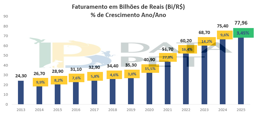 São Paulo, março de 2026 – O setor pet fechou o ano de 2025 com o pior resultado desde 2019, crescendo apenas 3,45% e faturando R$ 77,96 milhões. Após obter em 2024 o menor ganho desde a pandemia de Covid-19, com alta 9,6% em relação a 2023, a entidade aponta aumento tímido como reflexo do cenário econômico e tributário enfrentado no país. Os números ficam aquém da expectativa inicial, que era de, ao menos, chegar aos R$ 78 bilhões.